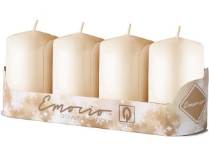 Vánoční svíčka ve tvaru válce.