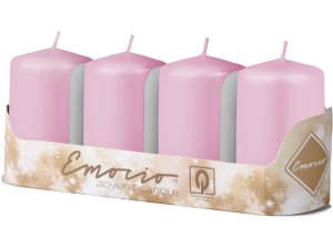 Klasická parafinová svíčka ve tvaru válce.