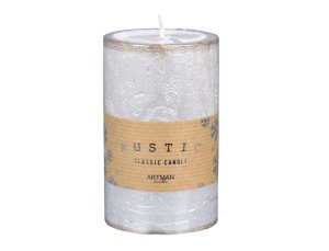 Svíčka ve tvaru válce s hladkým povrchem v provedení metalický lesk.