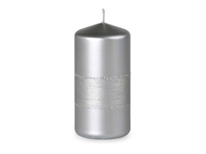 Svíčka ve tvaru válce s hladkým povrchem, v provedení metalický lesk.