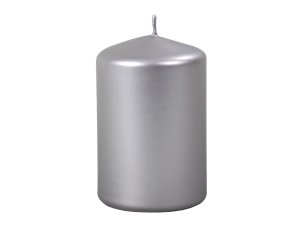 Svíčka ve tvaru válce s hladkým povrchem, v provedení metalický lesk.