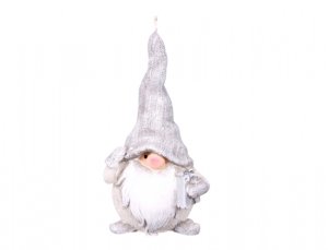 Figurální svíčka v podobě vánočního skřítka s čepicí. Šířka: 8 cm, výška: 15 cm.