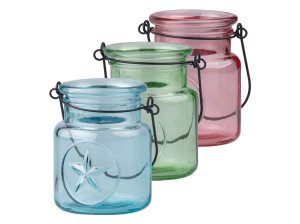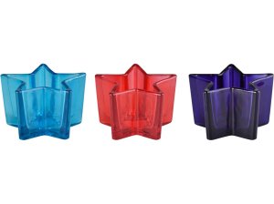Skleněný svícen 97×126 mm na maxi čajovou svíčku s motivem hvězdičky, mix barev.