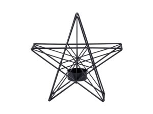 Černý kovový svícen ve tvaru hvězdy – dekorace pro čajové svíčky.