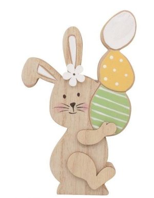 Zajíc dřevěný s kytkou na postavení 8 x 30 cm