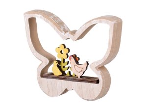 Dřevěná slepička s menší růžovou slepičkou je ideální dekorací v jarním období zejména na Velikonoce.