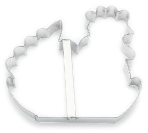Vykrajovátko na cukroví ve tvaru kuřátka o velikosti 6,5 x 4,5 cm.