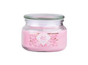 Emocio skleněná svíčka Pink Flower v růžové barvě se skleněným víčkem 100x79 mm