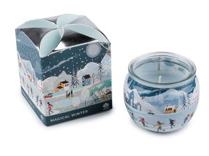 Dekorativní vonná svíčka ve skleněné dóze s víčkem a se svěží, sladkou vůní, jakoby jste se právě zakousli do čerstvých výběrových jablek.