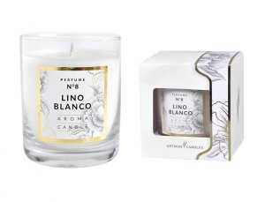 Vonná svíčka ve skle balená v krabičce s potiskem.