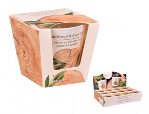 Vonná svíčka ve skle s vůní santalového dřeva.