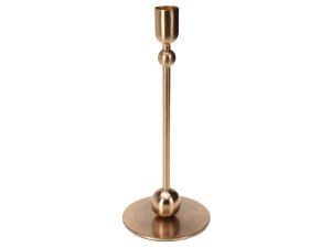 Elegantní kovový svícen ve zlaté barvě, vhodný na kónickou svíčku.