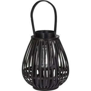 lucerna bambusová, velikost: 23x23x27cm, černá barva, s uchem a skleněným kalíškem, velikost 75x100mm