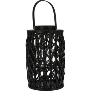 lucerna, vrba, velikost: 23x23x40cm, s držadlem a skleněným válcem 12x12cm na stojanu, černá barva