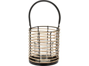 Černá proutěná lampa s uchem a závěsem na svíčku – dekorativní a přenosná pro útulnou atmosféru.