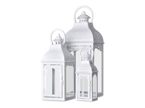 Sada tří kovovo-skleněných luceren v bílé – elegantní a praktický dekorativní set.