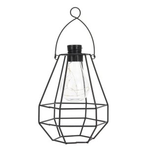 Černá kovová drátěná lampa se závěsem na svíčku – stylový prvek pro útulnou domácí atmosféru.