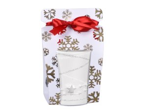 Dekorativní sklo Bolsius s vánočními motivy – krásná sváteční atmosféra se světlem svíčky.