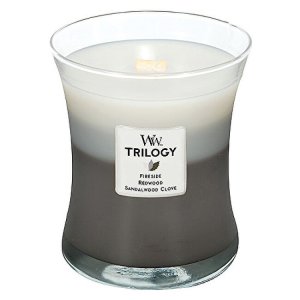 Svíčka Trilogy Hřejivé dřevo je kombinace hřejivých dřevitých vůní se špetkou koření.