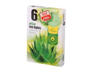 Zelené čajové svíčky s vůní aloe v hliníkovém kalíšku.