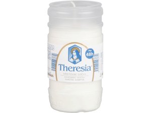 Skleněná hřbitovní svíčka s vyměnitelnou parafínovou náplní 45g, s plastovým spodkem, zajišťujícím dobrou stabilitu skla a plastovým vrškem, který chrání plamen před zhasnutím vlivem větru a deště.