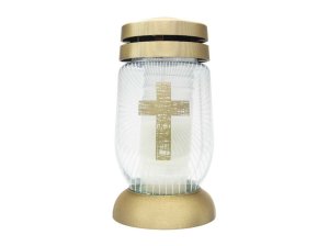 Svíčka s motivem kříže, ideální pro náboženské účely na hřbitově.