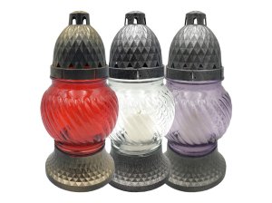 Stylová hřbitovní lucerna vyrobená ze skla s moderním LED osvětlením.