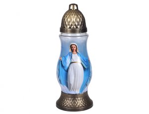 Svíčka s motivem Svaté Marie pro náboženské účely.