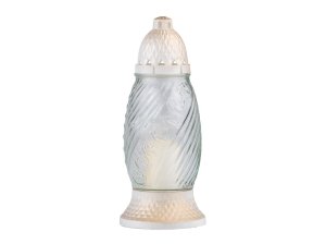 Hřbitovní lampa skleněná, v moderním, jednoduchém designu drážek zatočených po celém obvodu.