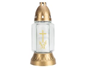 Stylová hřbitovní lucerna vyrobená ze skla s moderním LED osvětlením.