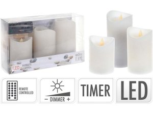 Sada tří bílých LED svíček s reálným plamenem a časovačem – bezpečné a dekorativní svícení.