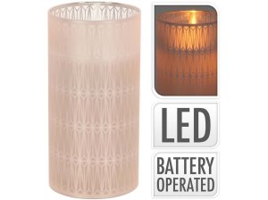 - LED svíčka s efektem plápolajícího plamínku- skleněné provedení- napájení: 3x AAA baterie (není součástí)- vhodné do interiéru i exteriéru- rozměry: 7,5 x 12,5 cm