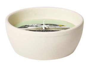 Zahradní repelentní svíčka, vůně citronela, v keramické misce s dřevěnými knoty.