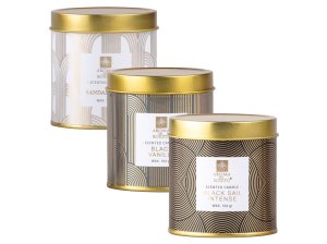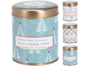 Svíčka v plechu 71×83 mm, vonná, vánoční motivy, mix barev.