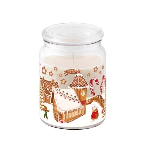 SVÍČKA VE SKLE S VÍČKEM 510G PERNÍKOVÁ VESNIČKA