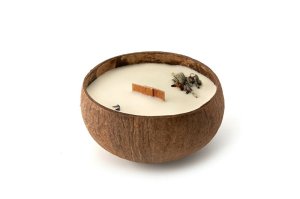 Svíčka z kokosu - vůně kokos- Sójové svíčky v kokosové skořápce jsou krásnou ozdobou a dekorací.