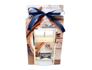 Vonná svíčka ve skle. Delikátní vůně pomeranče a čokolády.