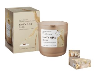 Prémiová vonná svíčka ve skle s matným vzhledem, balená v krabičce s potiskem.