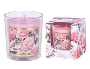 SVÍČKA VE SKLE RŮŽOVÁ/TYRKYS 10,9X8CM 292G