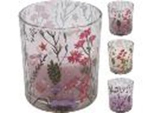 Svíčka ve skle vonná květinový dekor v mixu barev 90x100mm