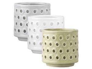 Keramický svícen na čajovou svíčku o rozměru 100 × 100 mm v různých barevných provedeních.