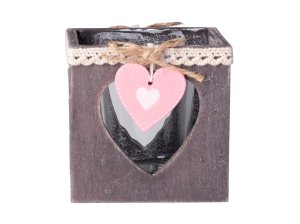 Svícen dřevo Srdíčko na čajovou svíčku v přírodní a růžové barvě 85 mm