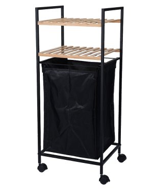 - koupelnový úložný regál s košem na prádlo- ocelová konstrukce v matné černé barvě- ochranný nástřik prodlužuje životnost, brání proti korozi- 2 žebrované police z přírodního bambusového dřeva- hlavní …