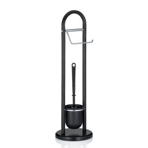 Elegantní kovový lakovaný držák toaletního papíru stojanového typu.