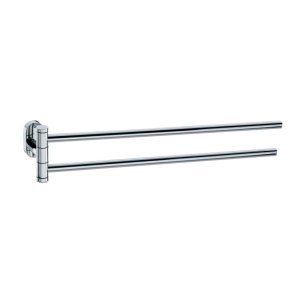 Držák na ručníky SWING – stylový a praktický doplněk do koupelnyElegantní design s důrazem na detail – nápadné koncovky a pět ozdobných kroužkůTři pohyblivé věšáky nabízejí dostatek prostoru pro ručníkyVyroben …