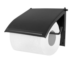 Kvalitní černě lakovaný držák toaletního papíru určený k montáži na stěnu pomocí samolepek 3M.