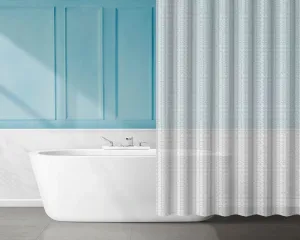 Koupelnový textilní závěs vyrobený ze 100% polyesteru.