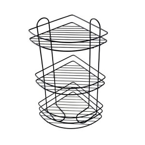 Drátěná rohová třípatrová polička je vyrobená z pochromované oceli.