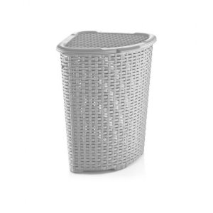 Rohový koš na špinavé prádlo s víkem na pant, plastová imitace ratanu.