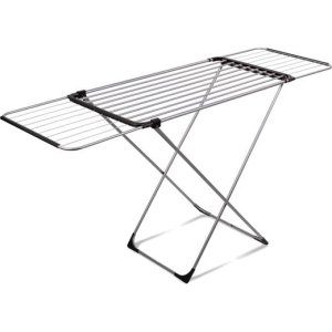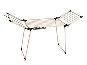 Stabilní stojanový sušák na prádlo s výklopnými bočnicemi vhodný do každé domácnosti.
